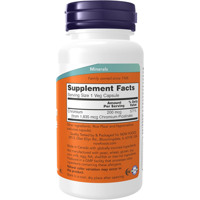 NOW Chromium Picolinate 200 mcg 100 Veg Capsules
