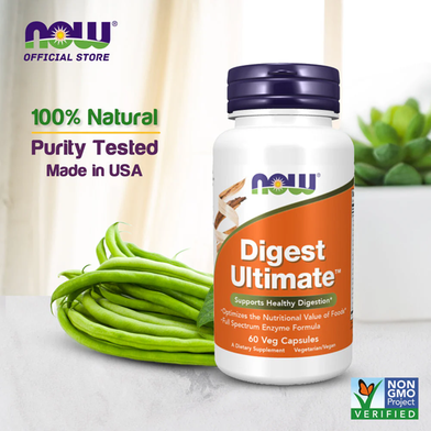 Digest Ultimate™ is a potent proprietary combination of digestive enzymes produced through controlled fermentation of select microbial species and is stable throughout the pH range of the GI tract.* This full-spectrum digestive support formula helps to optimize nutrient absorption by assisting in the breakdown of protein, carbohydrate and fat, as well as dairy, grains and indigestible fibers found in foods such as vegetables and beans.* In addition, Digest Ultimate™ is suitable for vegetarians.