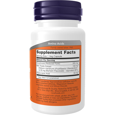 Milk thistle extract and alpha lipoic acid are included as complementary ingredients.
