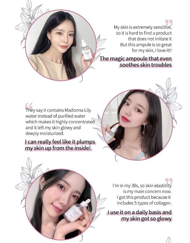 This ampoule is perfect for dull skin. It helps skin to build natural strength and elasticity, making it bright and clear. It calms the skin, moisturizes and makes skin smooth and perfect for makeup.