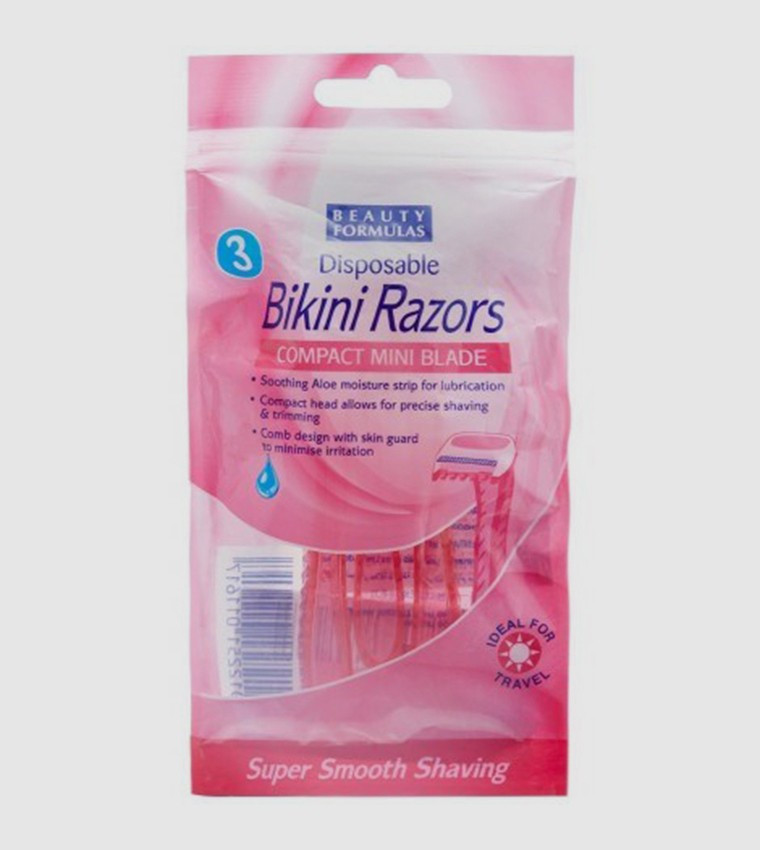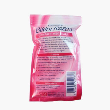 Beauty Formulas Disposable bikini razor with a light compact mini head is ideal for comfortable precise shaving and t of the bikini area. With a soothing Aloe moisture strip for lubrication where needed. Easy grip handle for confidence and control. Simple and practical to use ensuring a super smooth shave.