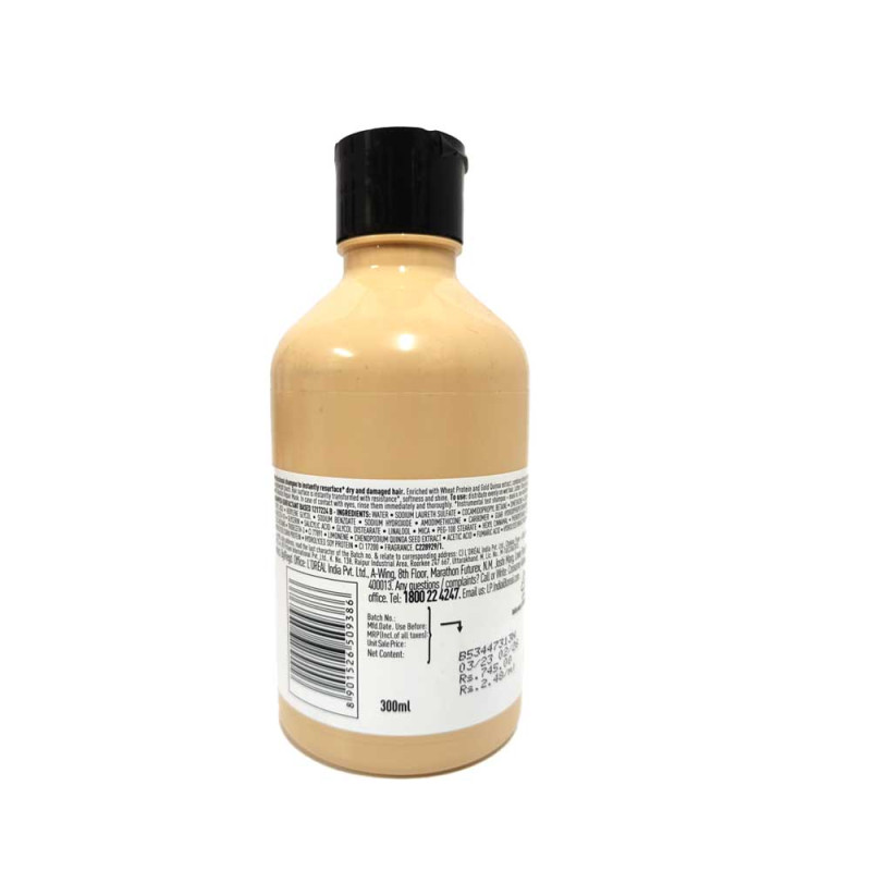 Infused with GOLD QUINOA + PROTEIN, the professional formula of the Instant Resurfacing Shampoo immediately cleanses and restructures sensitized hair, while leaving it with a lightweight touch.