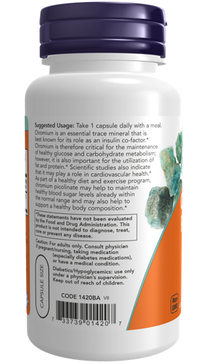 Chromium is an essential trace mineral that is best known for its role as an insulin co-factor.* Chromium is therefore critical for the maintenance of healthy glucose and carbohydrate metabolism; however, it is also important for the utilization of fat and protein.* Scientific studies also indicate that it may play a role in cardiovascular health.* As part of a healthy diet and exercise program, chromium picolinate may help to maintain healthy blood sugar levels already within the normal range and may also help to support a healthy body composition.*
