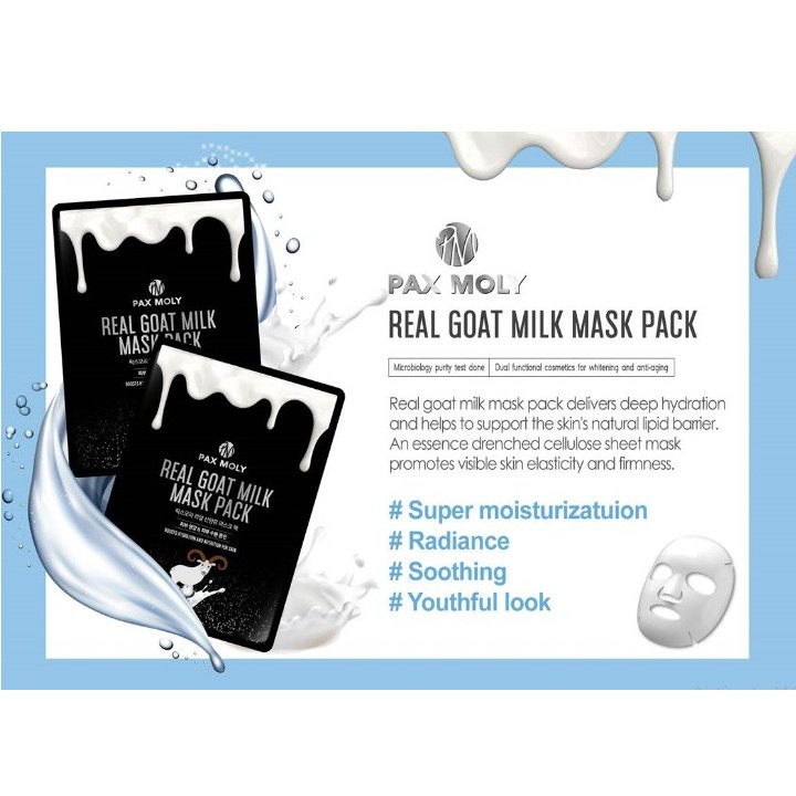 created using a combination of ingredients from nature and goat milk. The sheet mask that is saturated with essence offers a potent dose of nourishment that results in notably more radiant skin. It fits all types of skin. In addition to providing intense moisture, a real goat milk face mask pack supports the skin's natural lipid barrier. A cellulose sheet mask soaked in essence encourages the firmness and elasticity of the skin. Particular advantages help to postpone the onset of skin aging. Assist in squelching radicals and radiant skin