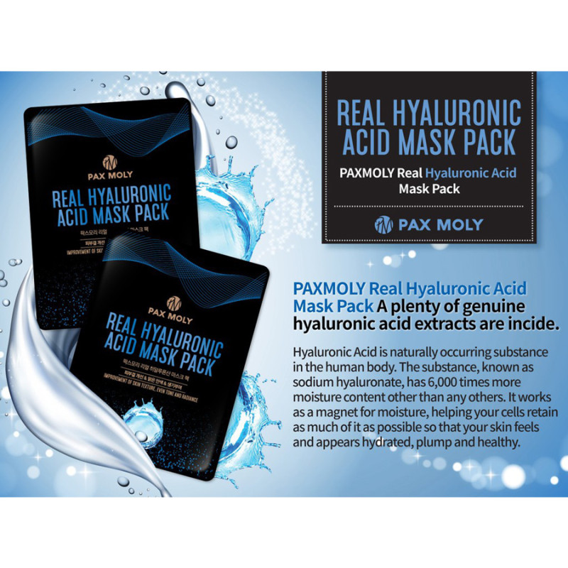 The hyaluronic mask pack is a beauty product that soaks a high-concentration serum on the sheet and supplies moisture and nutrients to the skin at the same time. Sleeping with a mask pack is the easiest comes to skin beauty. Benefits Suitable for all skin types. Hyaluronic acid moisturizes the skin and keeps up a normal level of moisture balance in the cells, working it strong and strong to the touch. The hidden slender, film that is made on the surface of the skin prevents the volatilization of water, retaining moisture inside, while it does not clog the pores of the skin. It accelerates the implication of its collagen and elastin, also affects immune responses, protects the skin cells from free radicals, and protects the skin from premature aging. It also contains the anti-aging components adenosine and niacinamide. HOW TO USE IT Step 1: The face needs to be cleaned. Step 2: Place the sheet mask evenly on the face. Step 3: Leave on for 10 to 20 minutes and remove. Step 4: Pat the rest on the face for better moisturizing. You can use it twice a week. Suitable for all skin types. • Use cold in the summer: Before using, keep the package in the refrigerator to enjoy a refreshing and cooling mask. • Use warm in the winter: Before using, soak the package for about 2-3 minutes in 50-60C warm water to enjoy a soothing and warming mask