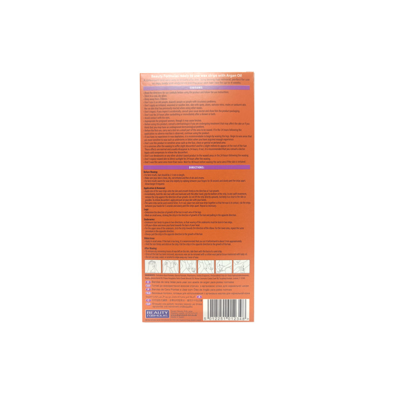 Beauty Formulas Leg and body hair Remover wax 20 strips are a convenient and easy way to ensure effective long lasting hair removal, enriched with Argan Oil. Perfect for use on legs, body and underarms, leaving your skin hair free for up to four weeks.