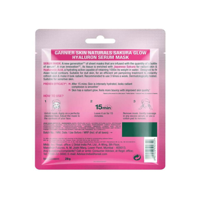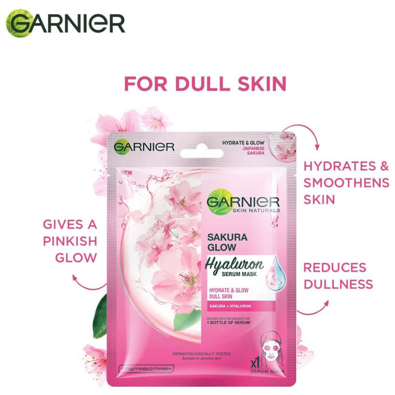 Perk-up dull and lifeless-looking skin with Garnier's new range of tissue face masks. Quick-acting ingredients like Japanese Sakura naturally replenish and brighten your skin to give you a rosy glow from within. An instant boost of hydration in just 15 minutes, the Garnier Sakura White Serum Mask delivers 1 week worth of serum in 1 mask, giving you smoothen your skin and a renewed sense of confidence. The Garnier Sakura Sheet Mask is dermatologically tested to work on all skin types.