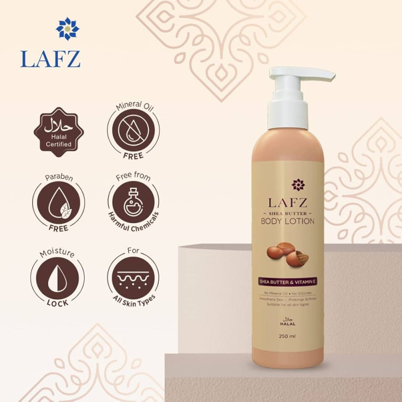 Lafz's creamy Shea Butter Body Lotion provides long-lasting protection and tenderness. It helps heal dryness and dehydration while providing deep-seated nourishment to your skin. Its lightweight solution swiftly absorbs into the skin, leaving it feeling healthy and soft. It has an intelligent pump packing and is simple to use.
