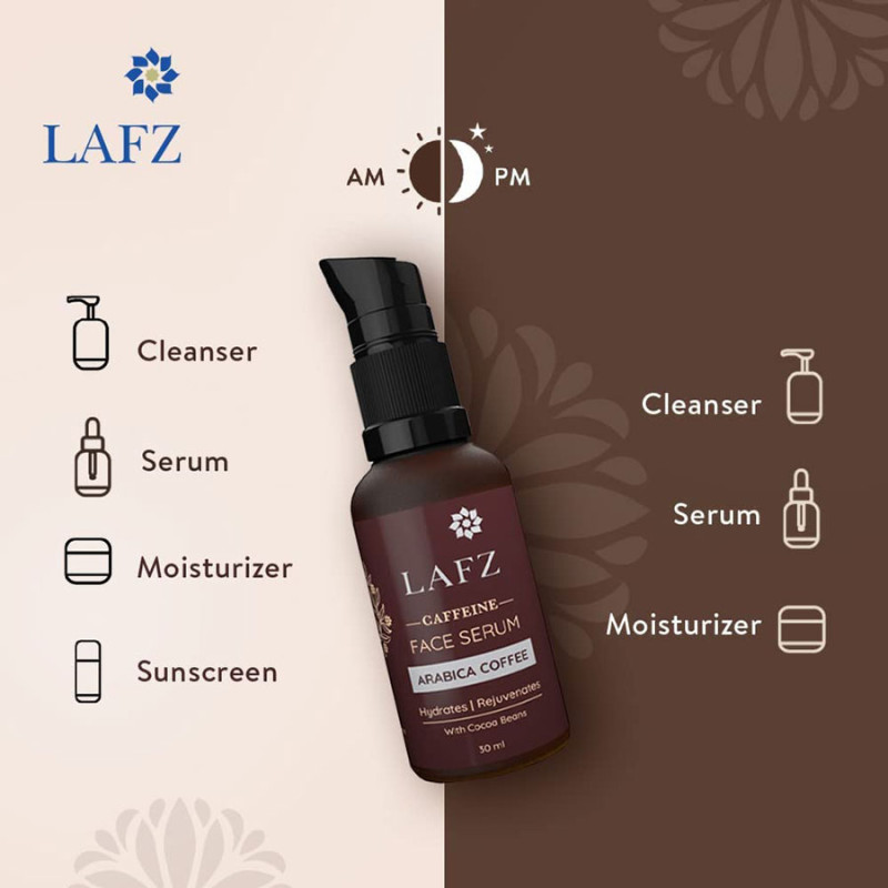 Lafz Caffeine Face Serum is perfect for gentle exfoliation while nourishing your skin from within. It helps brighten skin while reducing the effects of premature ageing. It also has soothing, antioxidant rich properties that helps your skin look healthy and radiant.