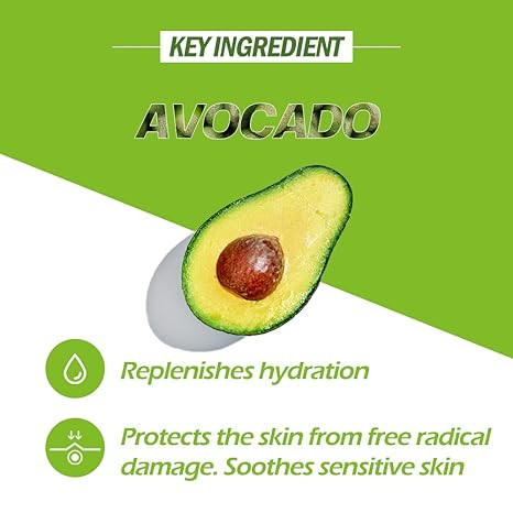 Containing in avocado Oleic Acid promotes collagen production, which helps grow new skin, accelerate the healing process, helping with issues like sunburn. It also hepl prevent pimples and redness, retain it`s elasticity and reduce wrinkles.
