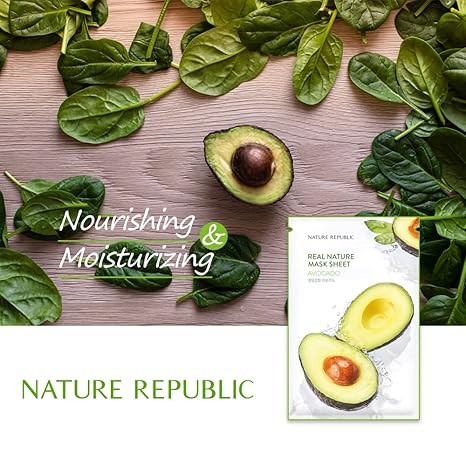 Nature Republic Real Nature Avocado Mask Sheet is an emulsion type mask sheet with nutrisious and creamy moisturizing texture for deep hydration and moisturizing.