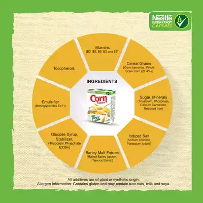 Tear open a box of corn flakes to reveal the simple WHOLE GRAIN goodness inside. Nothing beats a bowl of delicious, crispy golden corn flakes to start the day. Not only does Cornflakes make a tasty breakfast, but it also contains vitamins and minerals for a healthy start to the day. This means that a bowl of cereal in the morning can provide your family with a sufficient amount of vitamins and minerals for the day.