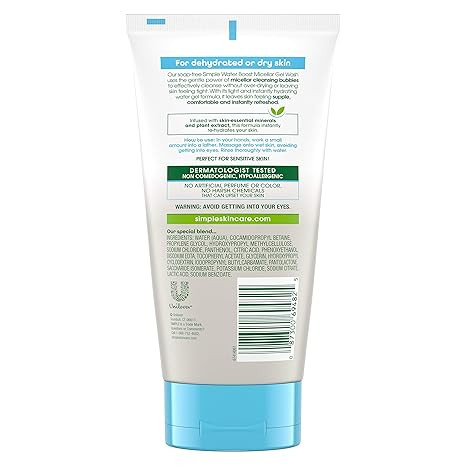 Experience the ultimate refreshment for your skin with Simple’s 100% soap-free, Water Boost Micellar Facial Gel Wash. This gentle yet effective gel wash is specifically formulated to cleanse your skin without over-drying.