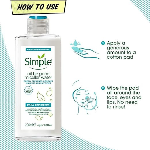 With Simple Daily Skin Detox Oil Be Gone Micellar Water you can now say bye bye to pore-clogging impurities and excess oil and hello to clear, fresh skin!