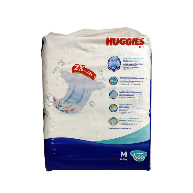 Product details of Huggies Disposable Diaper Dry Belt M (6-11Kg)60 Pcs Product Type: Dry Belt System Huggies Dry Belt Baby Diapers Quantity Per Pack: 72 Pcs Size: Medium (M) Weight: 6-11 KG Up to 12 Hours Absorption Country of Origin: Malaysia Natona Shop/Wholesale Express BD/Linear Shop/Orpa Surgical Huggies Baby Dry Diaper is the softest diaper pant! Your baby's skin is delicate and that's why it needs extra care. Ordinary diaper-pants keep your baby dry but they may not be gentle on your baby's fragile skin! Hence we have made a diaper pant with a "Soft-Hug Design" which is gentle on baby's delicate skin.