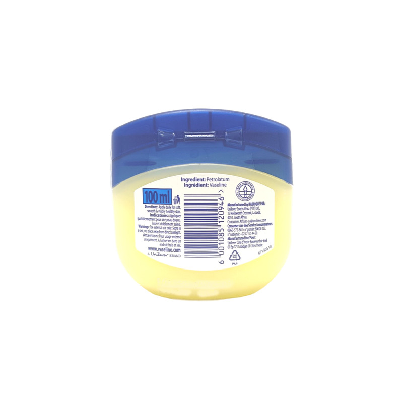 Vaseline Blue Seal Original Petroleum Jelly is made with 100% pure petroleum jelly, triple-purified to lock in moisture for healing and protection against dry skin.