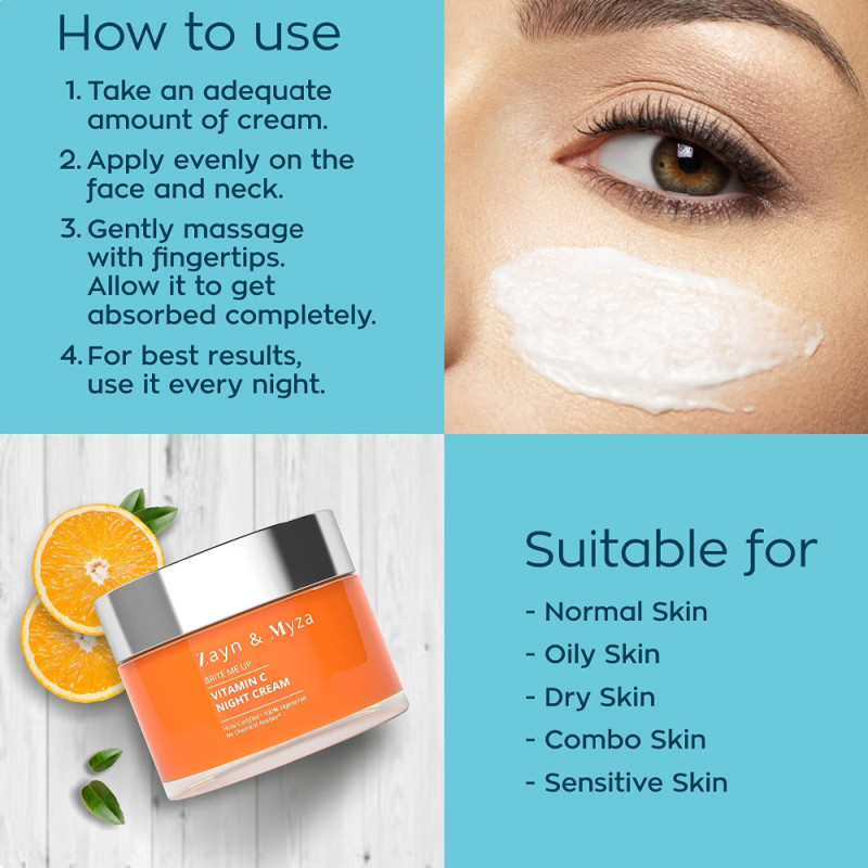 • Vitamin C stimulates collagen. Brightens & tightens the skin.